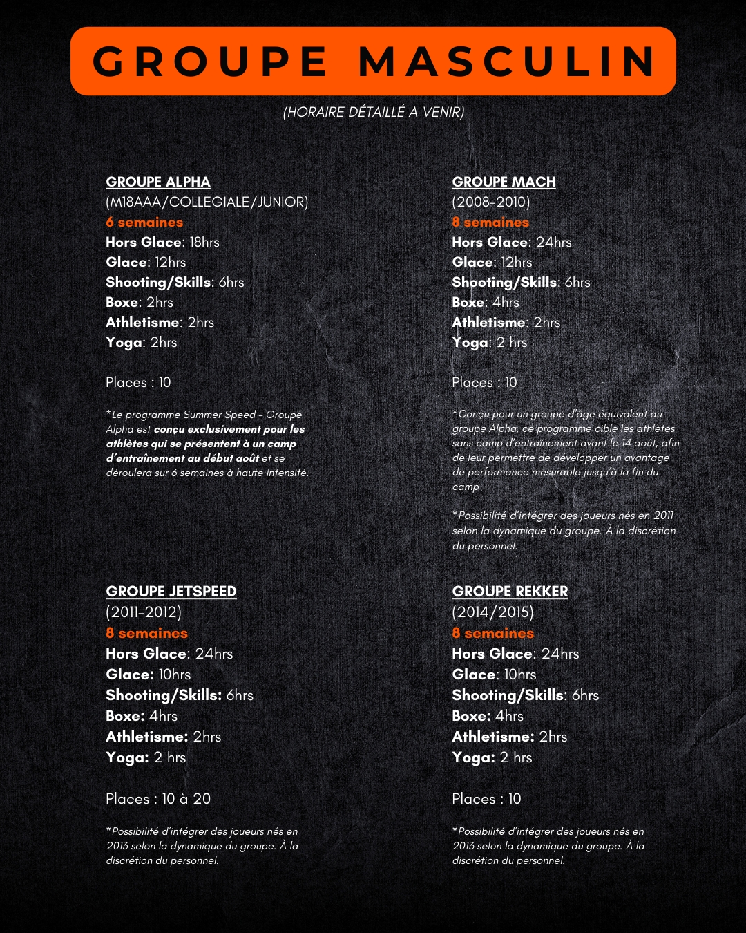 Un programme d'entraînement intensif de 8 semaines, spécialement conçu pour les joueurs élites !